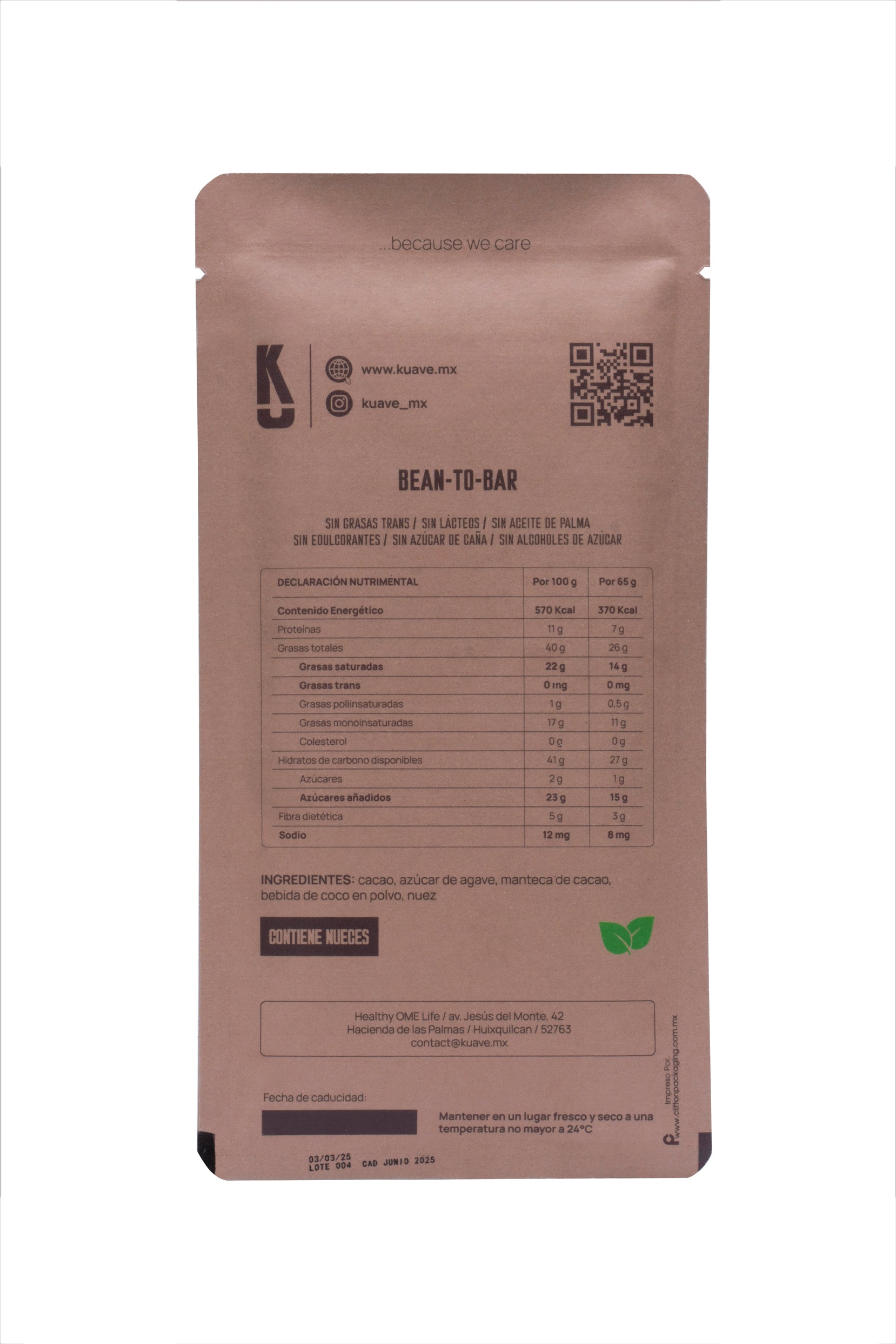 Nuestra versión vegana de chocolate con leche de coco. Una combinación suave y cremosa de cacao con nuez de la India y coco en polvo. Perfecto para quienes buscan un sabor más dulce sin sacrificar lo natural.