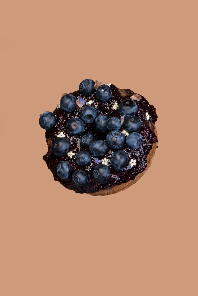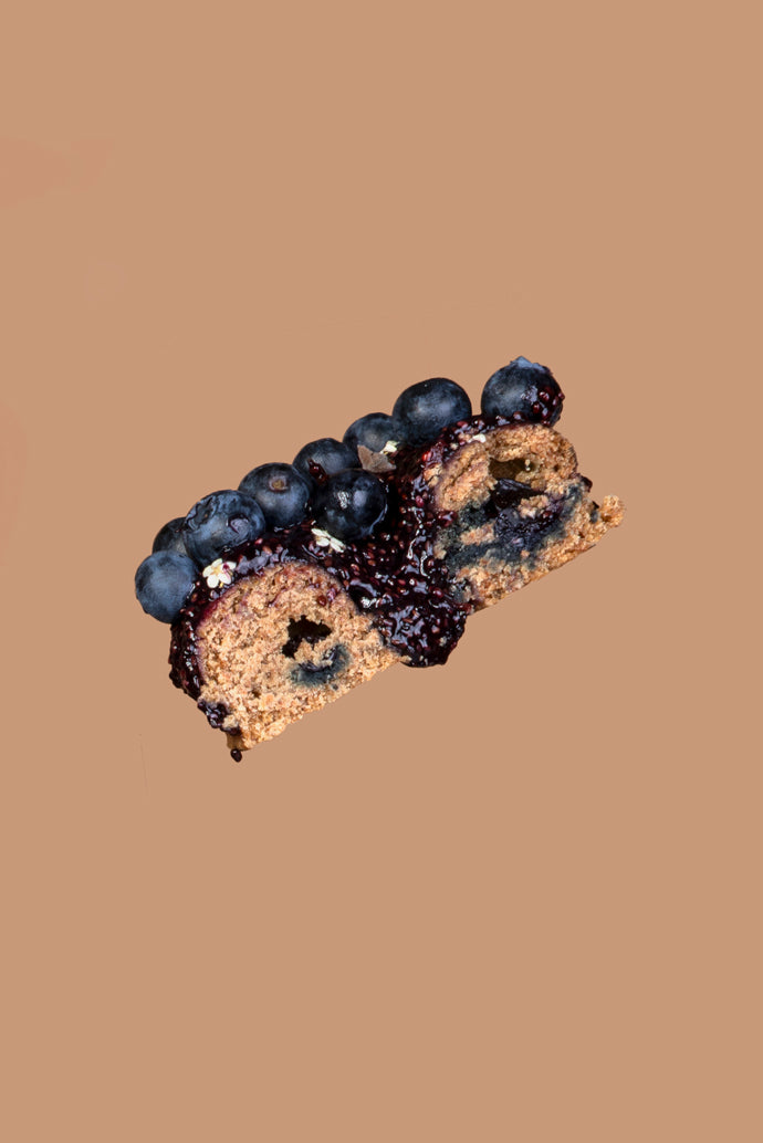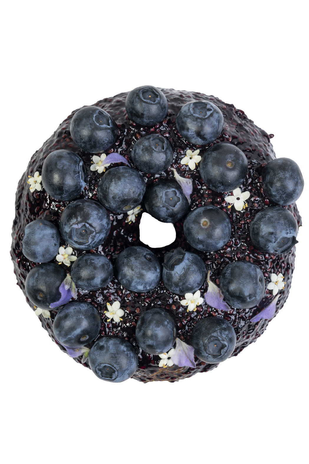 Esponjosa por dentro, vibrante por fuera. Rellena con arándano natural y cubierta con mermelada casera de arándano y chía, esta dona combina lo dulce con lo nutritivo. Decorada con arándanos frescos, es un bocado lleno de textura, antioxidantes y sabor real.
