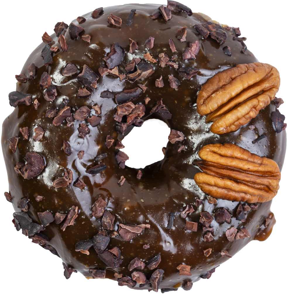 Una combinación adictiva de dulzura y carácter. Cubierta con caramelo artesanal, decorada con nibs de cacao tostado y un toque de sal de mar que resalta cada bocado. Equilibrio perfecto entre lo crujiente, lo suave y lo intenso.